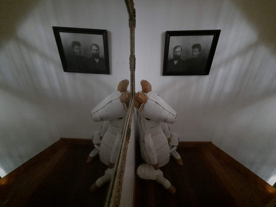 Best displayed in the corner of a room, the Ram in the Room casts a heavy presence. Whether felt as a nostalgia about childhood oversized stuffed animals, or a creepy imposing faceless creature with a slightly tilted head, is to the discretion of the viewer.